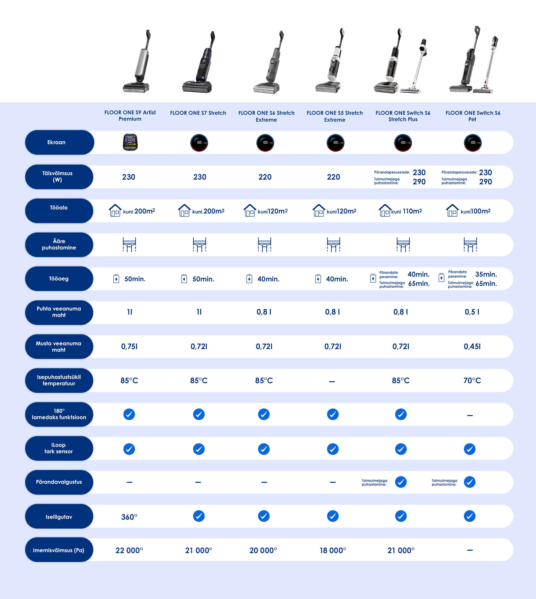 Pikk tööaeg kuni 40 minutit. Jõudke samaaegselt ja ilma katkestusteta nii nähtavate põrandapindadeni kui ka nurkadeni.